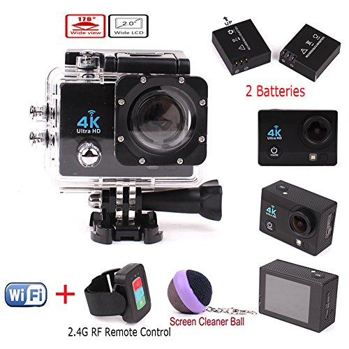 - WiFi + 2.4G Wireless RF Remote Control.Loop Recording, Time-Lapse Video, HDR, Slow Motion, Anti-Shaking, high performance audio, Date Stamp, Waterproof to 30M, Compatible with 100+ GoPro mounts and accessories.