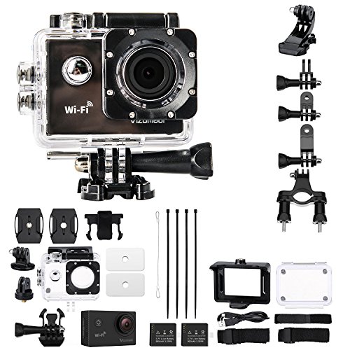 Vizomaoi Sports Action Camera,4K Ultra HD, WIFI,Waterproof 2 Batteries and 20 Accessories Kits, 170 Degree Wide Angle Lens, 2.0 Inch LTPS Screen Camcorder, US Based Customer Service