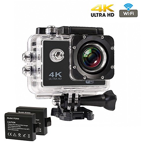 Best Action Camera,CrazyFire 4K Ultra HD Sport Action Camera,16MP 170 Degree Angle Underwater Wifi Action Camera with 2.0″ LCD,2pcs 900mAh Batteries and Accessory Kit