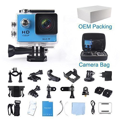 Sogo Pro Style Action Camera SJ4000 WiFi Waterproof 30m 1080P Full HD 1.5′ Screen Wide Angle Sport DV Mini Camcorder + Camera Bag (Blue)