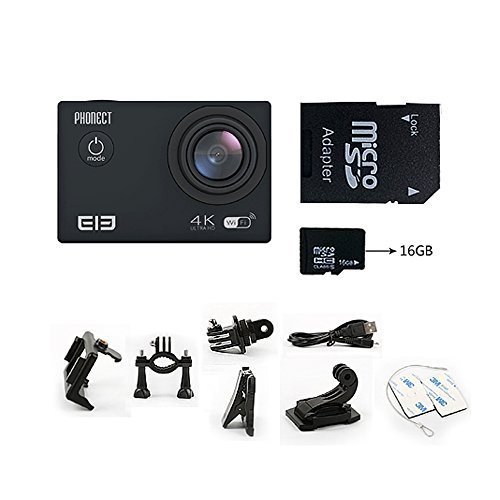 PHONECT ELE Explorer WIFI Waterproof Action Sport Camera 170 Degree Wide Angle Lens 1050mAh Aliwinner V3 2.0 Inch TFT LCD 4K 16MP – Black