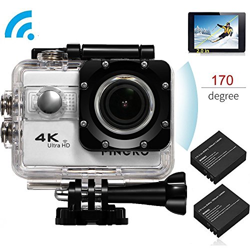 PINGKO Ultra HD 4K Waterproof Sport Action Camera,SONY Sensor WIFI 1080P 120fps HDMI 20MP+Dual 1050mAh Batteries with 2.0 Inch LCD Screen 170 Degree Wide Angle Lens Video Camcorder – Silver