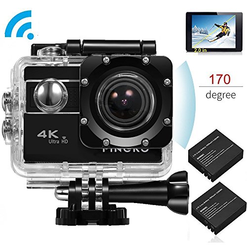 PINGKO Ultra HD 4K Waterproof Sport Action Camera,SONY Sensor WIFI 1080P 120fps HDMI 20MP+Dual 1050mAh Batteries with 2.0 Inch LCD Screen 170 Degree Wide Angle Lens Video Camcorder – Black
