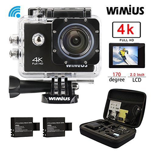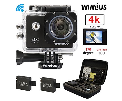 Action Camera 4k FPV WIMIUS L1 SONY Sensor Wifi 20MP Waterproof Sports Camera 2.0” 170°Wide Angle + 2 Batteries + 20+Accessories Kits-Black