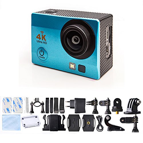 Sport Action Camera 4K Ultra HD 30fps Wifi Waterproof Cam DV Camcorder SONY Sensor 12MP 170 Degree Wide Angle 2 inch LCD Screen (Blue)