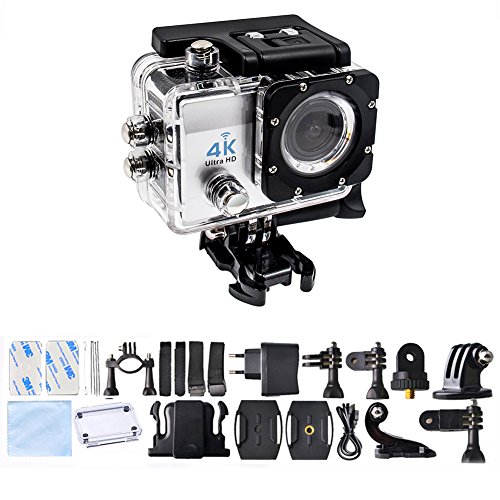Sport Action Camera 4K Ultra HD 30fps Wifi Waterproof Cam DV Camcorder SONY Sensor 12MP 170 Degree Wide Angle 2 inch LCD Screen (Silver)