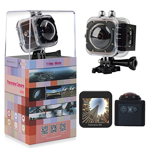 Excelvan V1 Waterproof WIFI 3K 30FPS 16MP Sport Action Camera 360 Degree Ultra HDMI HD Output Mini Panoramic Video 3D VR Camera with Multiple APP Display Modes (Black)