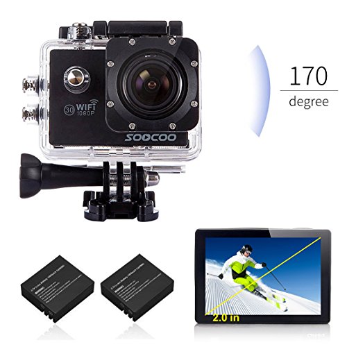 WIFI Action Camera, SOOCOO Waterproof Action Camera 12MP Full HD 1080P – 2.0″ LCD Screen, 170 Degree Wide Angle Lens, 30M/98ft Underwater Diving Camera – Silver (Micro SD Card Not Included)