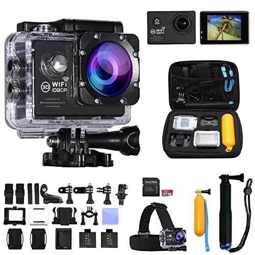 Sports Camera,LANYI 1080P FULL HD WIFI Sports Action Camera 2.0″ LCD 170°A+12-megapixel HD Ultra-wide Angle Lens 30-Meter Waterproof Diving Camera With 2 Batteries 32G Memory Card