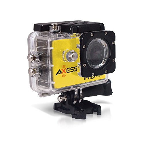 Axess CS3602-YL Sports Action Camera DVR Recorder 1080P with WiFi, Up to 12MP, 170 Degree HD Wide-angle, Water Proof Housing, Different Connection Accessories, Micro USB 2.0 and Micro HDMI in Yellow