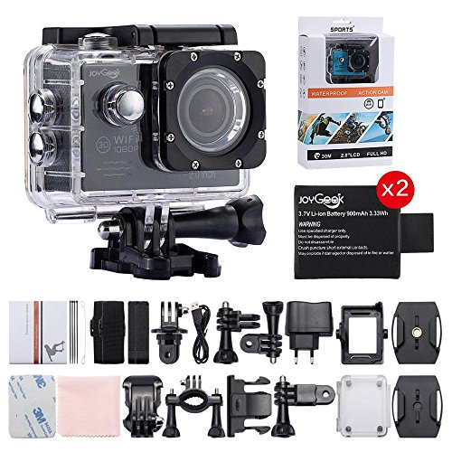 Action Camera,JoyGeek Wifi Sports Camera Mini Camcorder DVR Car Recoder with Full HD 1080P,2.0-inch LCD Screen,30M Waterproof,170 degree Wide Angle,Battery[2 Pack],16G Micro SD Card-Black