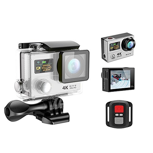 4K Ultra HD Wifi & HDMI Action Sports Camera Sport DV Dual LCD Screens & Waterproof Wrist Remote-Wifi Cam DV-Wrist Remote-Extra Battery-Carrying Case-20 Accessories Inc (Silver)