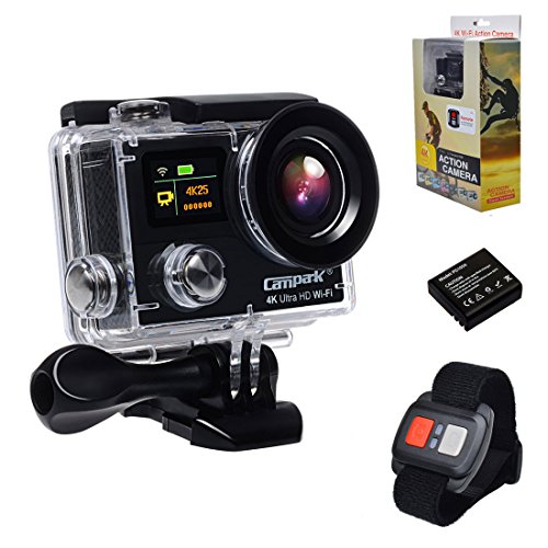 Campark 4K Sports Action Camera dual Screen 1080p 60fps,wifi,waterproof, RF Remote Control,Color Pacakage with Shockproof case included
