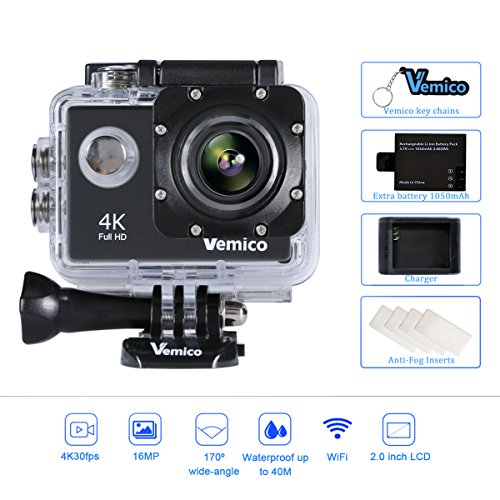 Warm Tips:Please tear off the screen protectors both on the lens and LCD screen Before use. Video Recording: Video Format:MP4 Compression Format:H.264 Video Resolution:4K@30FPS/2.7K@30FPS/1080P@60FPS/1080P@30FPS/720P@120FPS Time Lapse:0.5S/1S/2S/5S/10S/30S/60S Slow Motion:1080P@60FPS/720P@120FPS Loop Recording:2min/3min/5min Photo Shooting: Photo:16M/12M/8M/5M/2M Shooting Mode:Single/Auto shot/Timed shot/Drama shot Auto shot(3S/10S/15S/20S/30S) Timed shot(3S/5S/10S/20S) Drama shot(3P/S,5P/S,10P/S) Other Specifications: LCD:2.0LTPS+0.66 status screen Lens:170 degree A + high resolution …