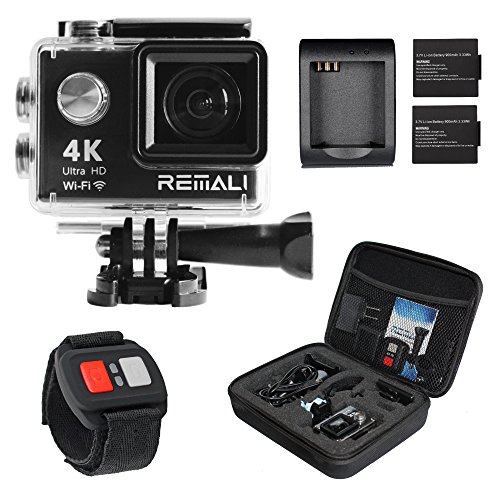 WIMIUS Q4 4K Action Camera WIFI Dual Screen Waterproof Sports Camera 16MP 170° Wide Angle Waterproof Case,2PCS Batteries And 20 Extra Kits Included-Black