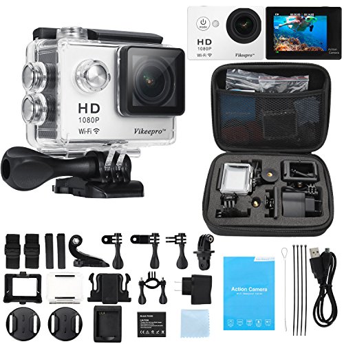 Sports Camera, Vikeepro 2.0 Inch 170 Degree Ultra-wide Angle Lens Full HD 1080p 12MP 98-Feet(30-meter) Waterproof Sports Diving Camera WiFi Remote Control Helmet Action Camera with Extra Battery