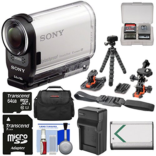Sony Action Cam HDR-AS200V Wi-Fi HD Video Camera Camcorder with 64GB Card + 2 Helmet & Flat Surface Mounts + Battery + Charger + Case + Tripod + Kit