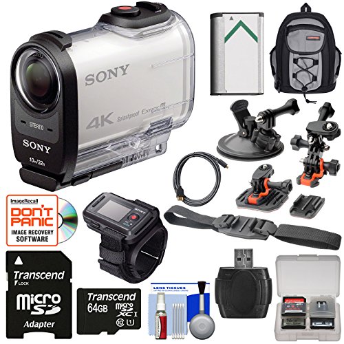 Sony Action Cam FDR-X1000VR Wi-Fi 4K HD Video Camera Camcorder & Remote + 64GB Card + 2 Helmet, Flat & Suction Cup Mounts + Battery + Backpack Kit