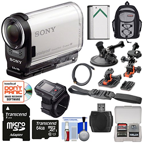 Sony Action Cam HDR-AS20 Wi-Fi 1080p HD Video Camera Camcorder with 64GB Card + Suction Cup, Dashboard, Flat & 2 Helmet Mounts + Battery + Backpack + Kit