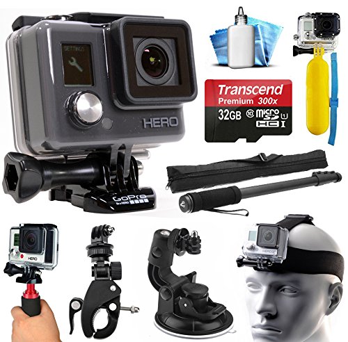 GoPro HERO+ LCD HD Video Recording Camera + SanDisk 32GB Micro SDHC Card + Medium Hard Case + Head Strap + Chest Strap & Hand Strap + Floating Handle + Monopod/Selfie Stick + Card Reader + Accessories