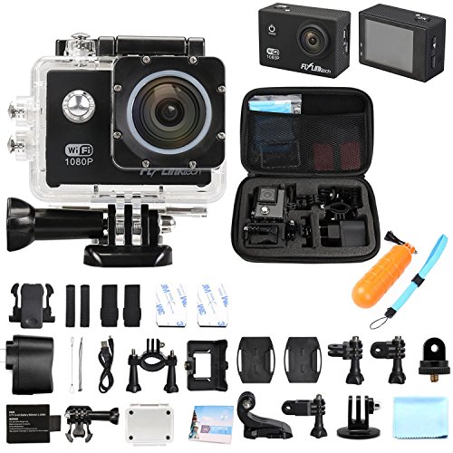 Sports Camera,Flylinktech® 2.0 Inch 170 Degree Ultra-wide Angle Lens Full HD 1080p 12MP Sports Diving Camera WiFi with Waterproof Carrying Bag+2-pack Batteries+Floating Handle Grip Pole (Black)