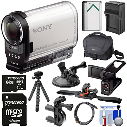 Sony Action Cam HDR-AS200V Wi-Fi HD Video Camera Camcorder with 32GB Card + 2 Helmet, Flat & Handlebar Bike Mounts + Battery + Case + Kit
