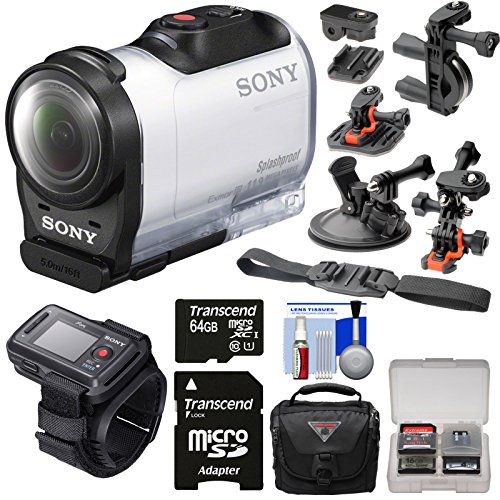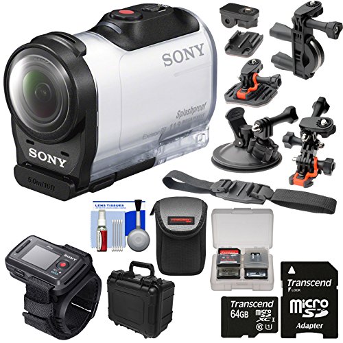 Sony Action Cam HDR-AZ1 Mini HD Video Camera Camcorder with 64GB Card + 2 Helmet & Flat Surface Mounts + Case + Flex Tripod + Kit