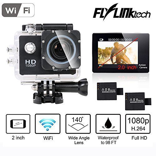 Flylinktech® SO60 Action Cam with 2 inch Screen Sharper Image Sports Camera Wifi 1080P 12MP Action Camera Waterproof 30M with 2-pack Batteries and Free Accessories (Black)