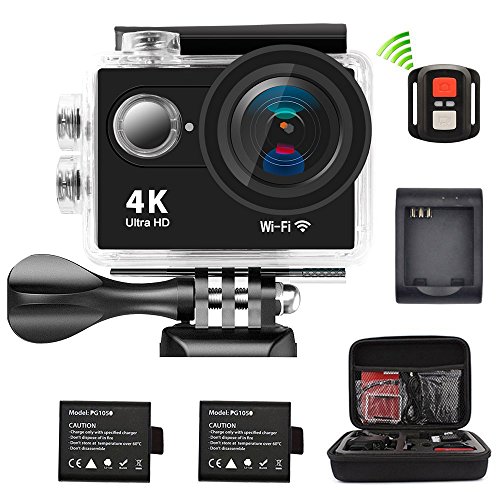 Sports camera, 2.4G Remote 4K WIFI Action Cam 2.0 Inch LTPS Screen 1080P 60FPS 12MP Action camera 170 degree Fish-eye Lens With 2 batteries Camera Bag(Black)