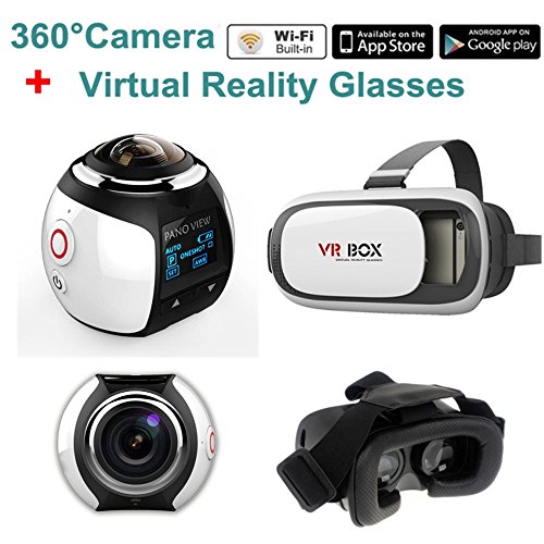 Boblov 4K 360 Action Camera Panoramic Camera 24482448 Ultra HD Panorama 360 Degree Video Cameras Deportiva Wifi Sport Cam Driving VR Camera With 3D Virtual Video Game VR Box Reality (White)