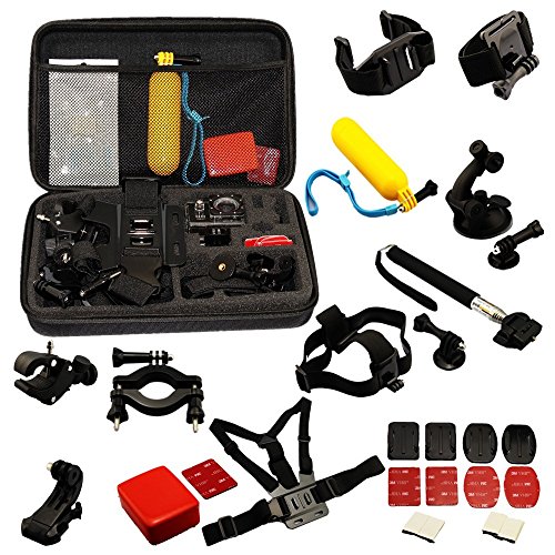 Features: Accessories Set 30 pcs Items Storage Protective Carry Case Bag + Telescoping Handheld Monopod + Handlebar Mount Holder + Chest strap + Head Strap + Wrist Strap + Helmet strap + Floating Hand Grip Monopod +Flat Curved Adhesive Mount + Suction Cup + Anti-Fog Inserts for Gopro Hero 1 2 3 3+ 4 / …