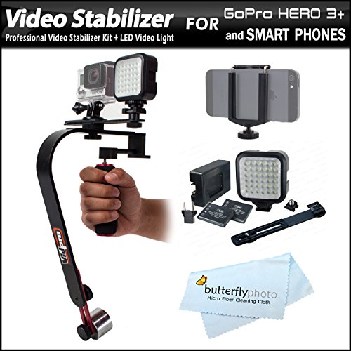 Professional Video Camcorder Stabilizer Kit Includes LED Video Light Kit + Video Stabilizer for GoPro, Gopro Hero 3+, GoPro HERO4 Silver, GoPro HERO4 Black, GoPro HERO Action Camera, Apple iPhone, Smartphones, Cameras & Camcorders with Smartphone Holder