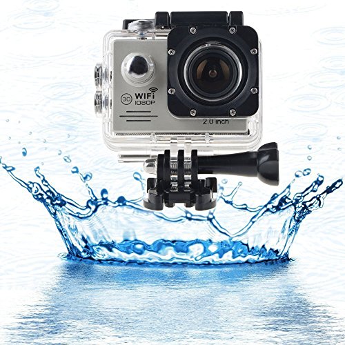 Action Camera Waterproof Diving Sports , 2.0″ LCD + 170° Wide Angel Lens + Full HD 1080P, Underwater video Camera Helmet Swimming Outdoor Motorcycle Bicycle Video Camera (Silver+WIFI)