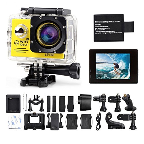 Aokon SJ7000 WIFI 2.0″LCD 1080P HD Waterproof Diving Sports Action Camera with 2 Batteries and 19 Accessories 12MP 170°Wide Angle Lens (Yellow)